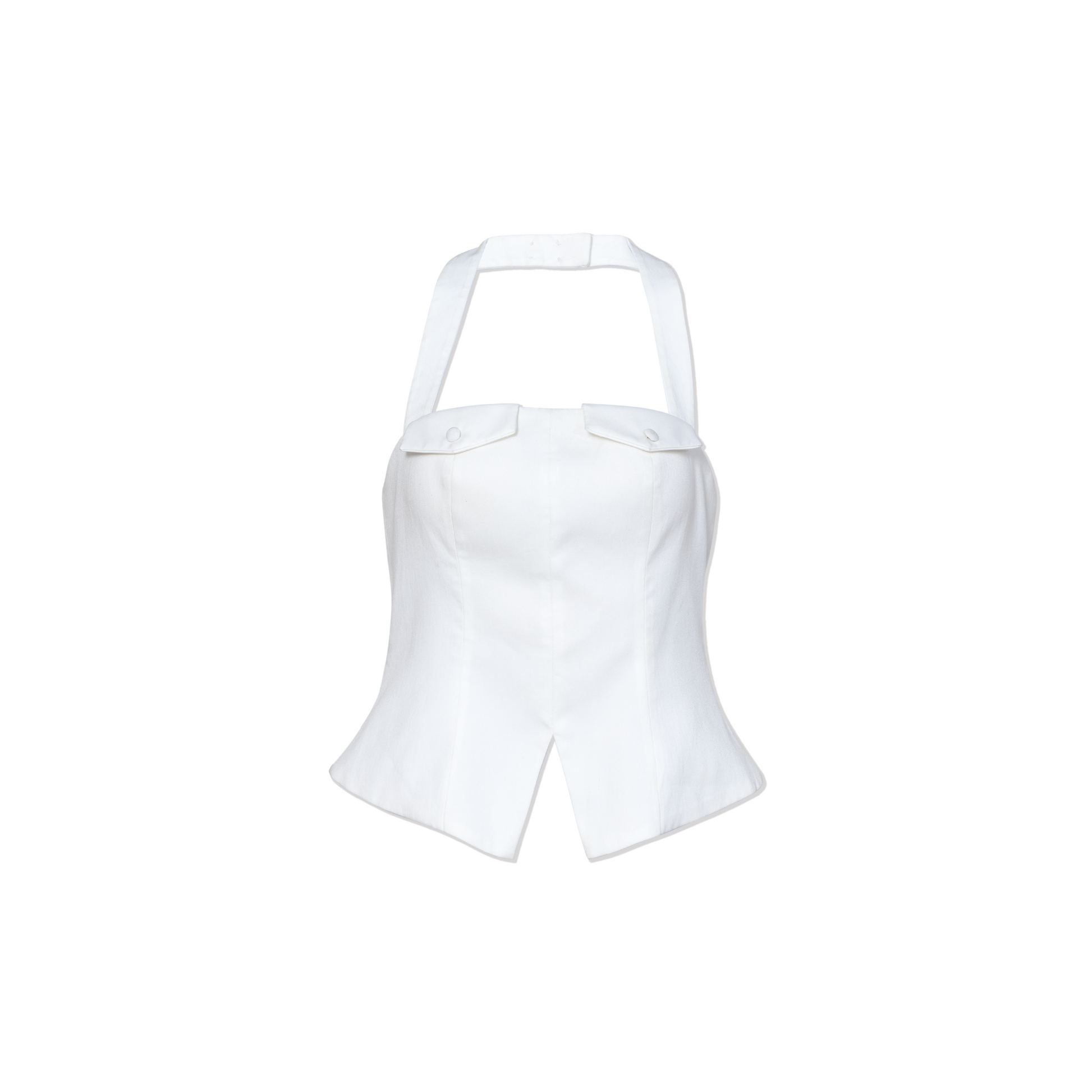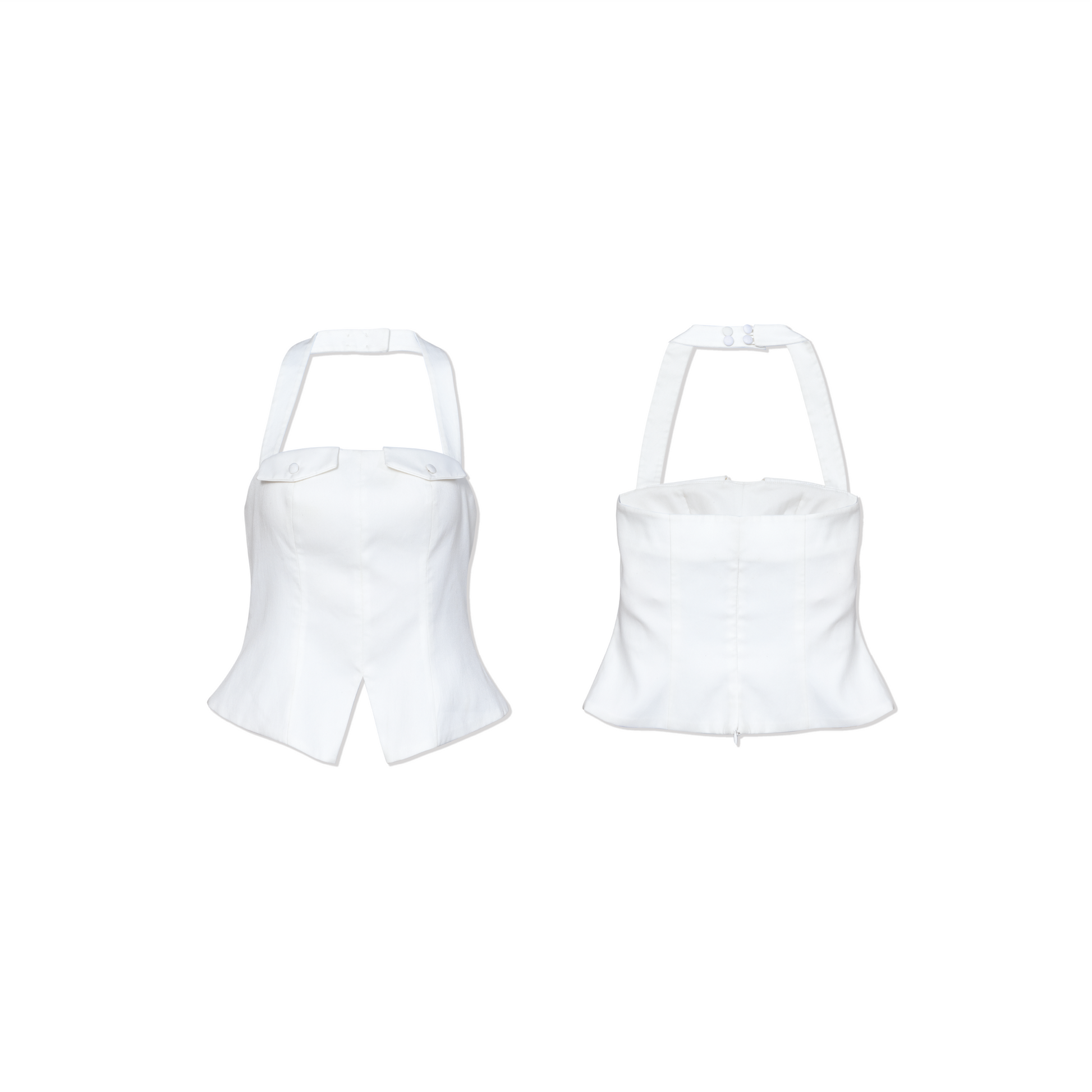 Bustier halter top with adjustable dual-level straps, built-in padding, crafted from high-quality fabric that is soft and comfortable, featuring a back zipper design for easy wear